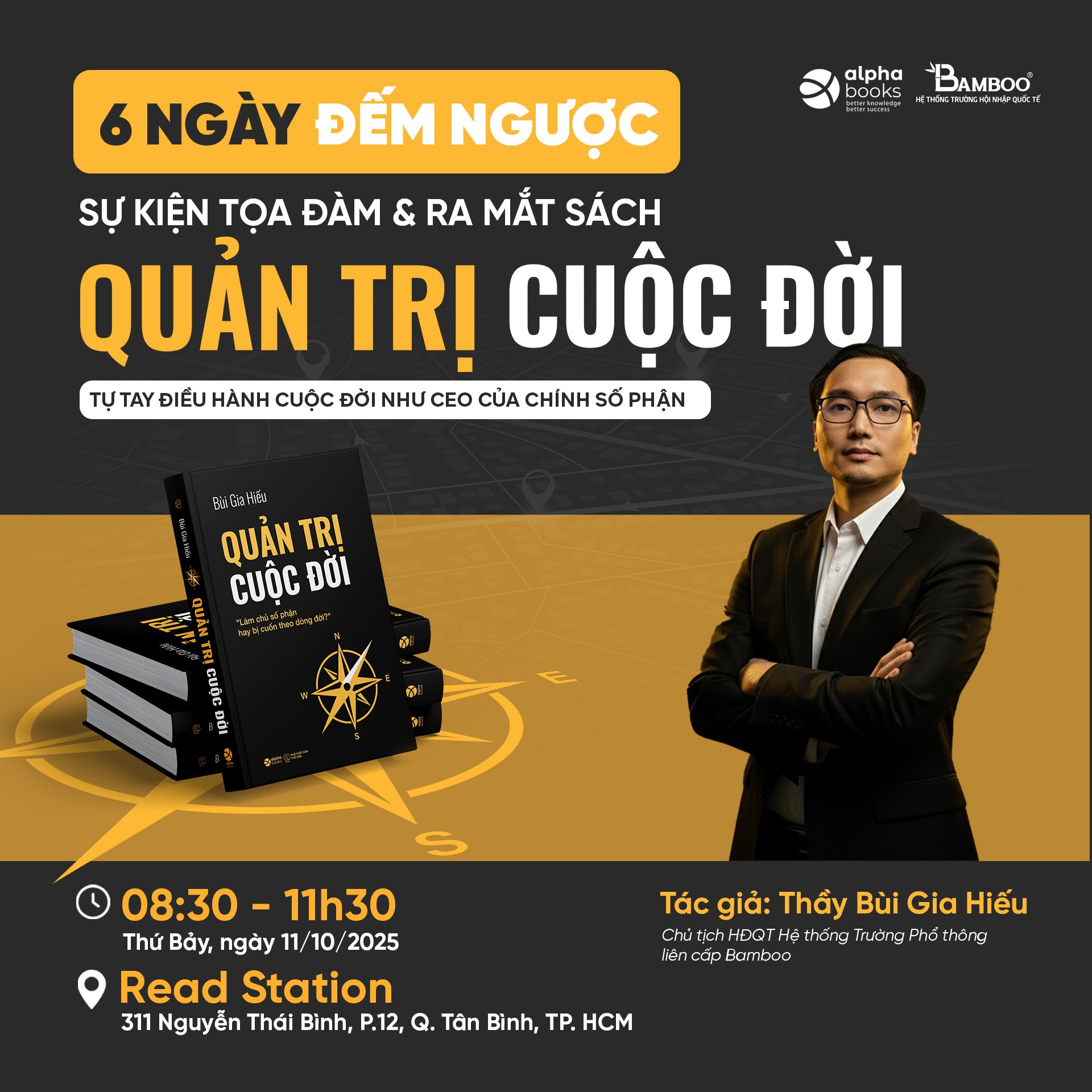 Ngày 11/10/2025, một sự kiện đặc biệt sẽ diễn ra tại Read Station (Q.Tân Bình) - đánh dấu sự ra mắt cuốn sách thứ hai của Thầy Bùi Gia Hiếu - Nhà sáng lập & Điều hành Hệ thống Trường HNQT Bamboo.